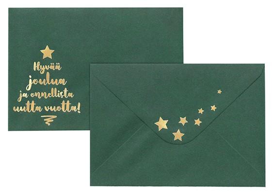 Foliokirjekuori C6 Hyvää joulua kulta tummanvihreä 10kpl
