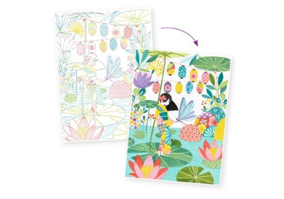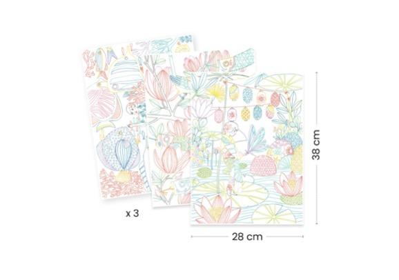 Satumaisen kauniisti kuvitetut, väritettävät julisteet on pakattu pahviseen kansioon. Sopii kaikenikäisille värittäjille