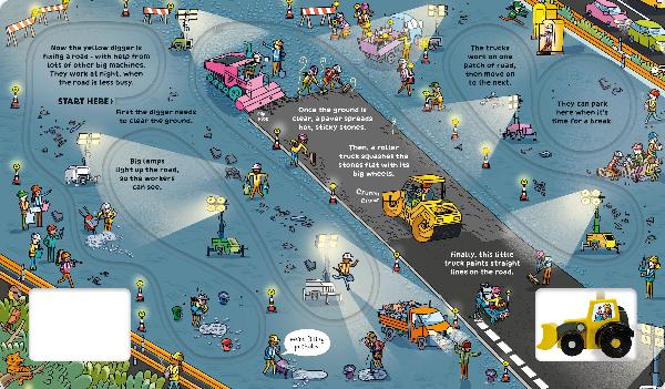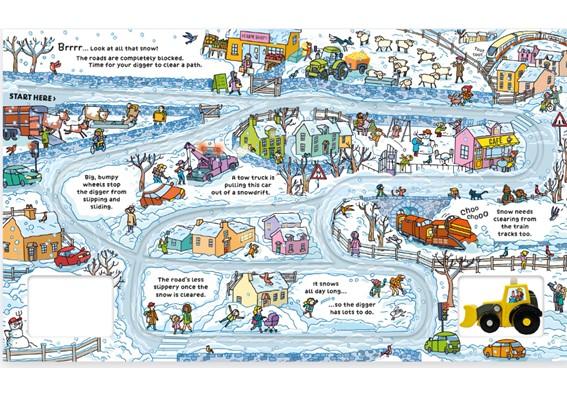 Kirjan mukana seuraa neljä rataa, joita pitkin vieteritraktori voi ajaa, kun se kuljettaa rakennusjätettä työmaalta, poistaa lunta talvisilta teiltä, kaivaa kuopan lampea varten ja auttaa korjaamaan kunnostusta vaativan tien.