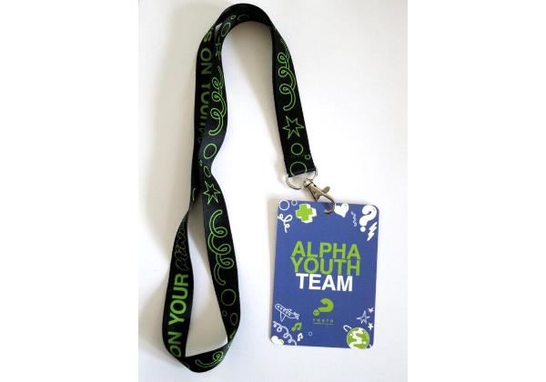 Alpha Youth -kaulanauhan avulla Alfa Youth -osallistujat tunnistavat tiimin jäsenet helposti. Kaulanauha yhdistää Alfa-perhettä kautta maailman.