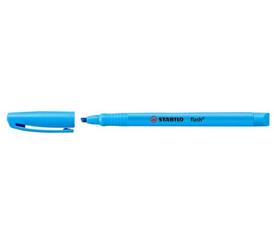 Stabilo Flash on kapearunkoinen korostuskynä, jolla teet merkintöjä helposti myös pienemmille fonteille. Korkealaatuinen, vesipohjainen, myrkytön ja fluoresoiva muste juoksee kevyesti viistosta kärjestä, jonka kahdella eri kirjoitusleveydellä sekä alleviivaat että korostat – myös lämpöpaperille. Kynä ei kuivu neljään tuntiin, vaikka korkki unohtuisi auki. Suojakorkissa on taskuklipsi.