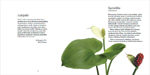 Tässä kirjassa ei kerrota, onko kukan teriö lievästi vastakohtainen, ovatko mykerön laitakukat kielimäisiä tai ovatko lehdet suikeita, vastapuikeita tai sepiviä. Ei, tässä kukat esittäytyvät itse ja kertovat pilke silmäkulmassa itsestään jotain olennaista, hauskaa, surullista, iloista tai ikimuistoista. Jokaisella kukalla on oma tarinansa.