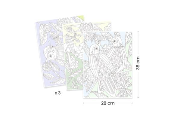 Satumaisen kauniisti kuvitetut, väritettävät julisteet on pakattu pahviseen kansioon. Sopii kaikenikäisille värittäjille