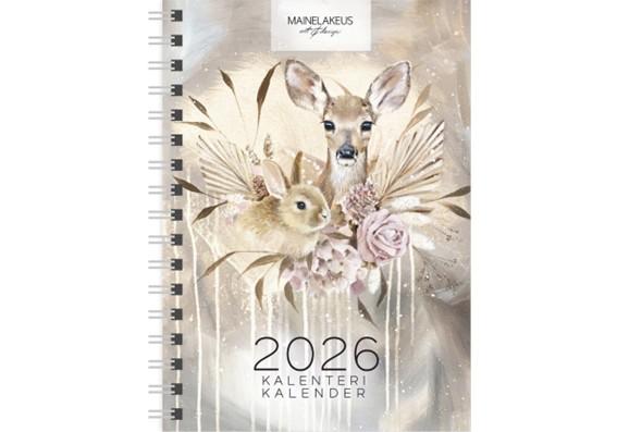 Taiteilija ja tekstiilisuunnittelija Hanna-Maria Mainelakeuden kuvittama kaunis luontoaiheinen päivyri A5-koko (148 x 210 mm).