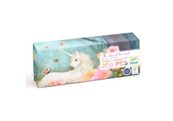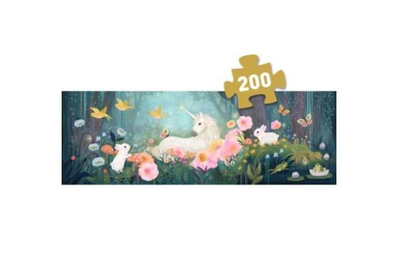 Lumoava palapeli yksisarvisesta,joka lepää kukkaniityn keskellä.