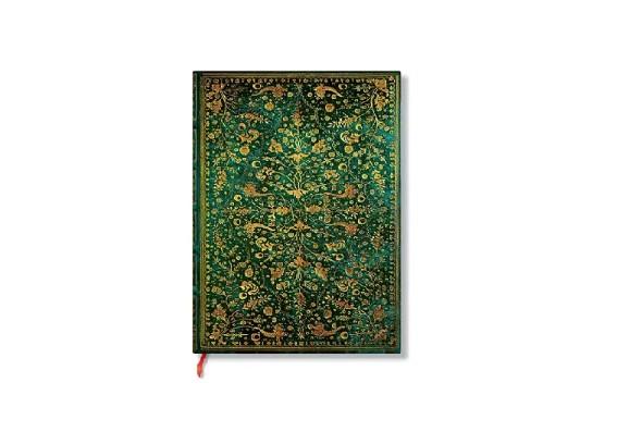 Paperblanks muistikirja Emerald Flower – Nature’s Grace. Muistikirjassa on 176 tyhjää sivua, kovat kannet, lukunauha ja tasku sisäkannessa. Kuminauhakiinnitys. Koko: 95 x 140 mm (MINI). Alkuperäinen kuva on Irlantilaisesta nahkakantisesta käsin sidotusta kirjasta “The Book of Common Prayer, and Administration of the Sacraments”. Aikakausi: 1760.