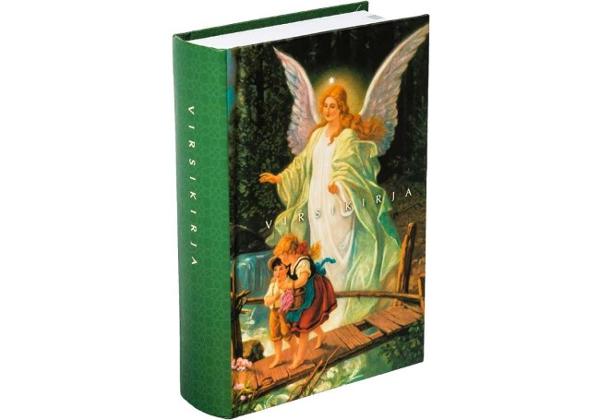 Kovakantinen, kestävä taskuvirsikirja Suojelusenkeli sisältää myös virsikirjan lisävihkon virret, katekismuksen ja jumalanpalvelusliitteet. Jokaisessa virressä on nuotit ja soinnutukset.