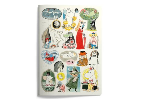 Pehmeäkantinen muistivihko (A4), laadukasta paperia. Painettu sisäkansi, pyöristetyt kulmat. Kannen kuvassa valkoisella pohjalla Muumi-hahmoja kiiltokuvina. 56 tyhjää sivua, paperilaatu Serixo 100 g. Design: © Moomin Characters™.