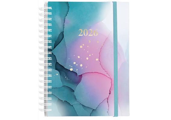 Kovakantinen, kierreselkäinen viikkopäivyri vuodelle 2026. Aukeamalla viikkonäkymä ja tilaa muistiinpanoille. Sisältää kuukausinäkymän joka kuukaudelle. Koko: 12 x 17 cm. Kielet: suomi ja ruotsi. Sisältää suomalaiset ja suomenruotsalaiset nimi- ja liputuspäivät, sekä kuun vaiheet. Putinki Design.