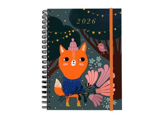 Kovakantinen, kierreselkäinen viikkopäivyri vuodelle 2026 Mira Malliuksen kuvituksilla. Aukeamalla viikkonäkymä ja tilaa muistiinpanoille, kalenterissa on sisäkuvituksia viikkosivuilla. Sisältää kuukausinäkymän joka kuukaudelle. Koko: 12 x 17 cm (Midi). Kielet: suomi ja ruotsi. Sisältää suomalaiset ja suomenruotsalaiset nimi- ja liputuspäivät, sekä kuun vaiheet. Design: Mira Mallius.